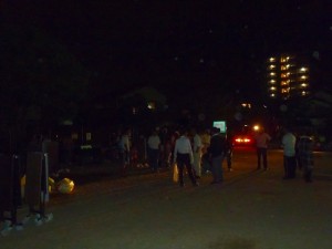 ちょうちんの取付中。会場が出来上がってまいりました。