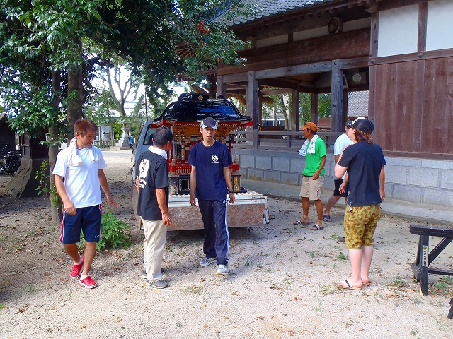 神社倉庫より、神輿会倉庫へ神輿を移動